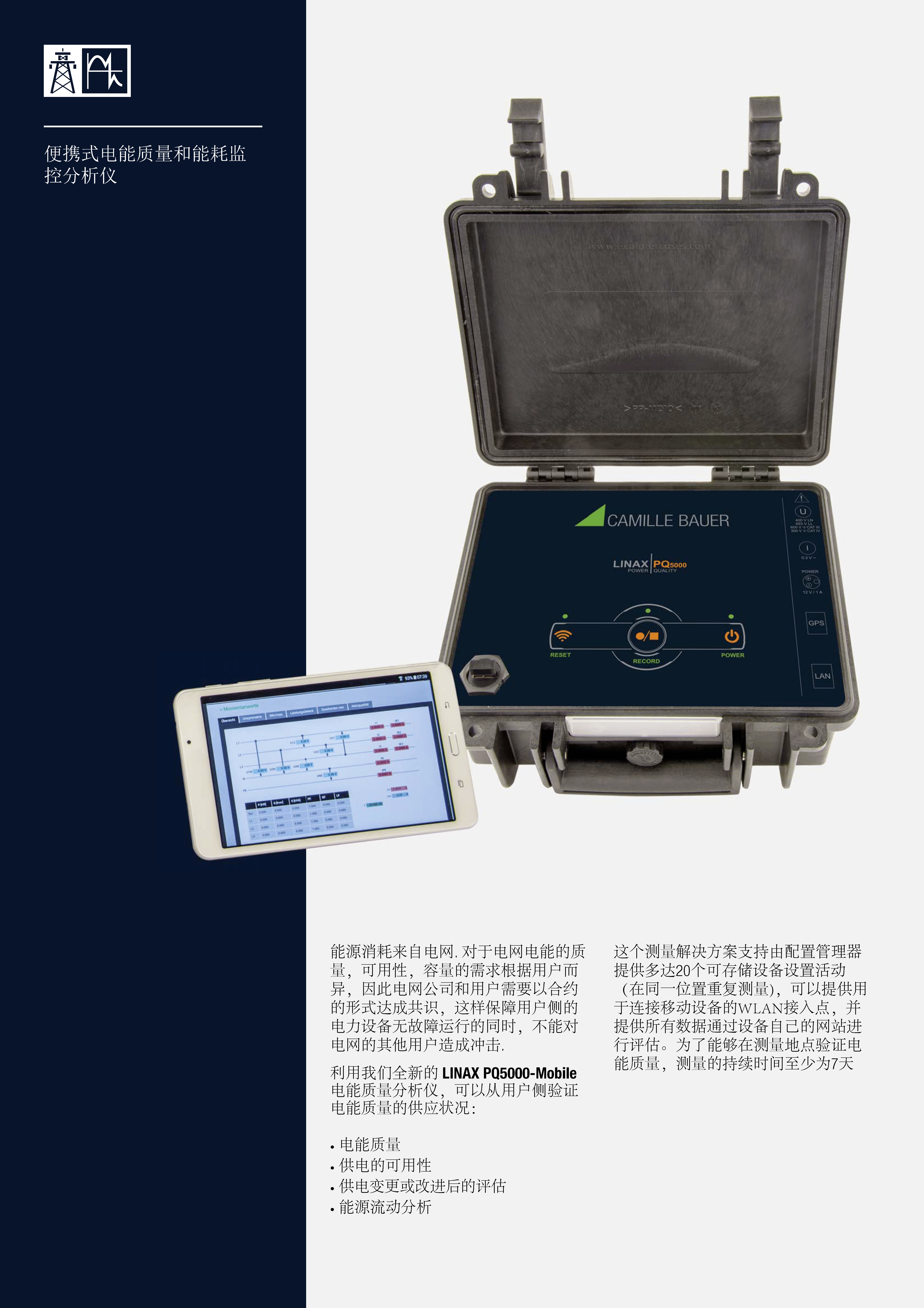 瑞士認(rèn)證級便攜式電能質(zhì)量和能耗監(jiān)控分析儀,用于統(tǒng)計評估供電質(zhì)量,記錄事件,對于電能質(zhì)量整改提升評估,通過能源管理節(jié)省電費(fèi)。手持式電能質(zhì)量測試儀LINAX PQ5000 Mobile。
