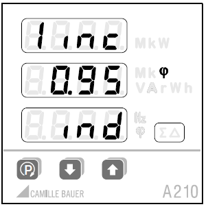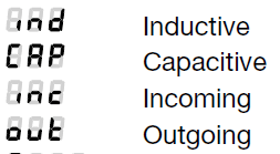 多功能電量顯示表SINEAX A210/A220/ A230/A230s也可以通過正向(Inc:Incoming)、反向(out:Outgoing)和感性(Ind:Inductive)、容性(CAP:Capacitive)的組合顯示四象限的功率因數(shù)和有功、無功電能等參數(shù)。