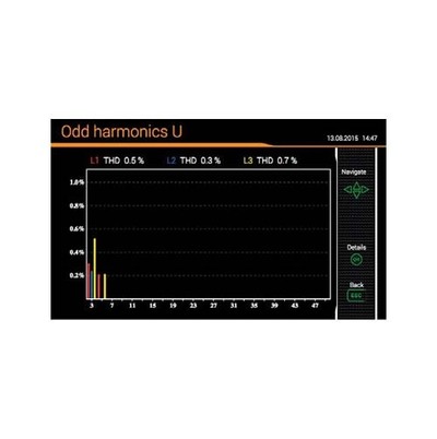 用圖示法顯示伴隨著TDD/THD的所有電流和 電壓的諧波,并可以讀取每一個諧波的圖形數(shù)據(jù)。