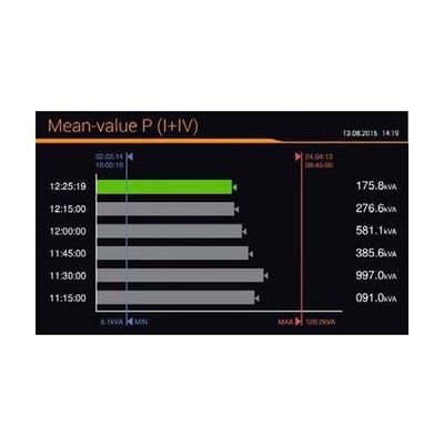 電壓、電流、功率值、功率因素的瞬間值 和不平衡值以及它們的最小/最大值都以數(shù)字或者x/y矩陣圖形的形式顯示。